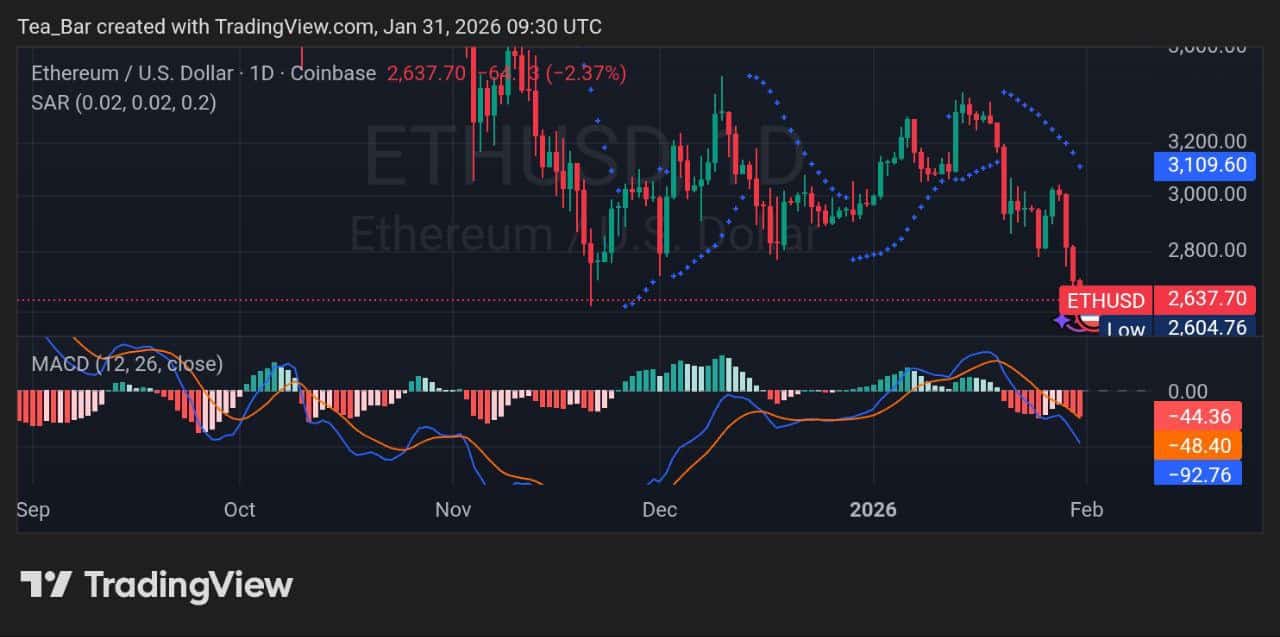ETH tests key supports. It nears $2,100-$2,000 if bears win. Bulls eye bounces from high-volume zones. Some forecasts see $2,685 by early February (up ~10%). Longer-term, 2026 averages hover around $4,600-$5,200, with highs possible near $5,200+.